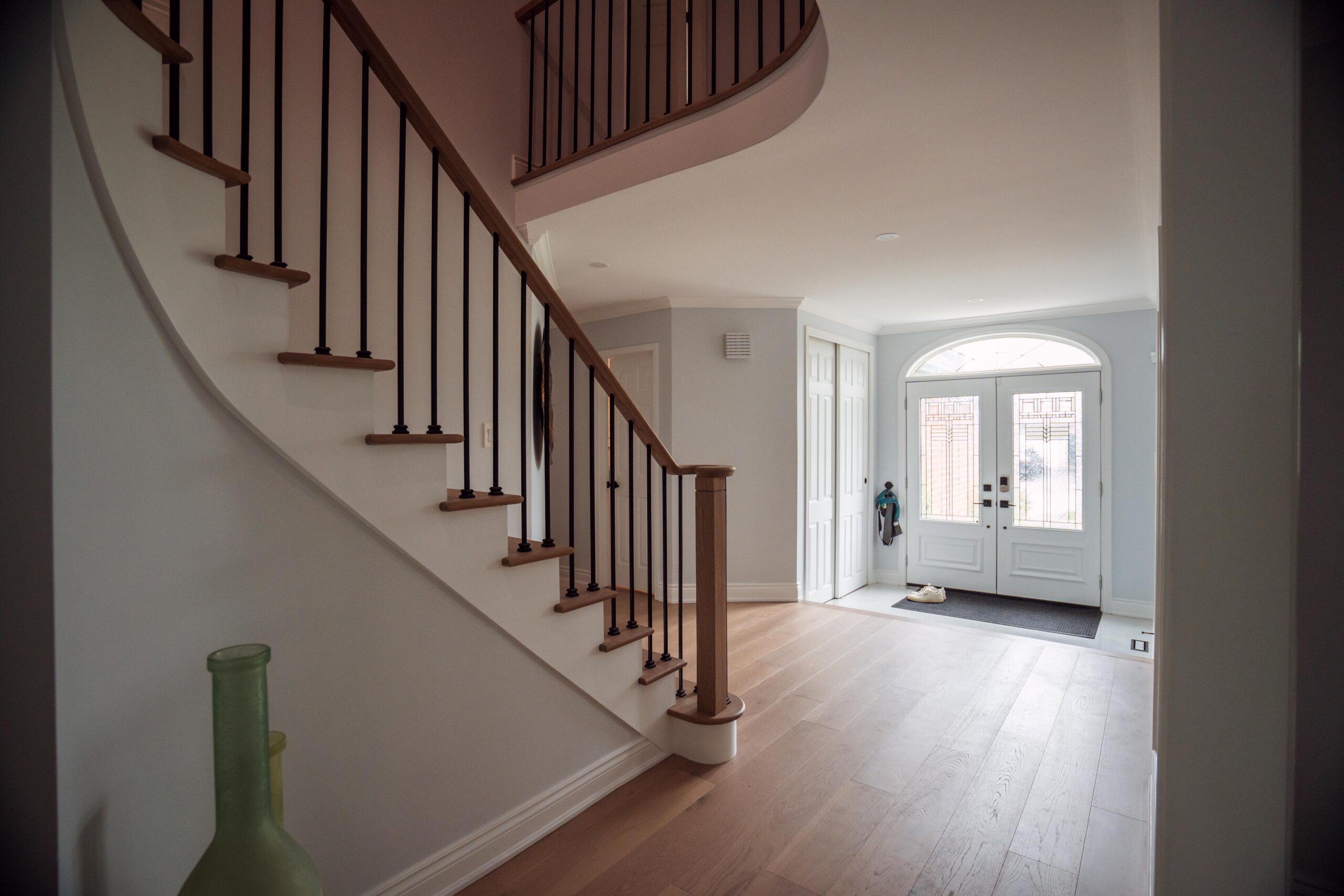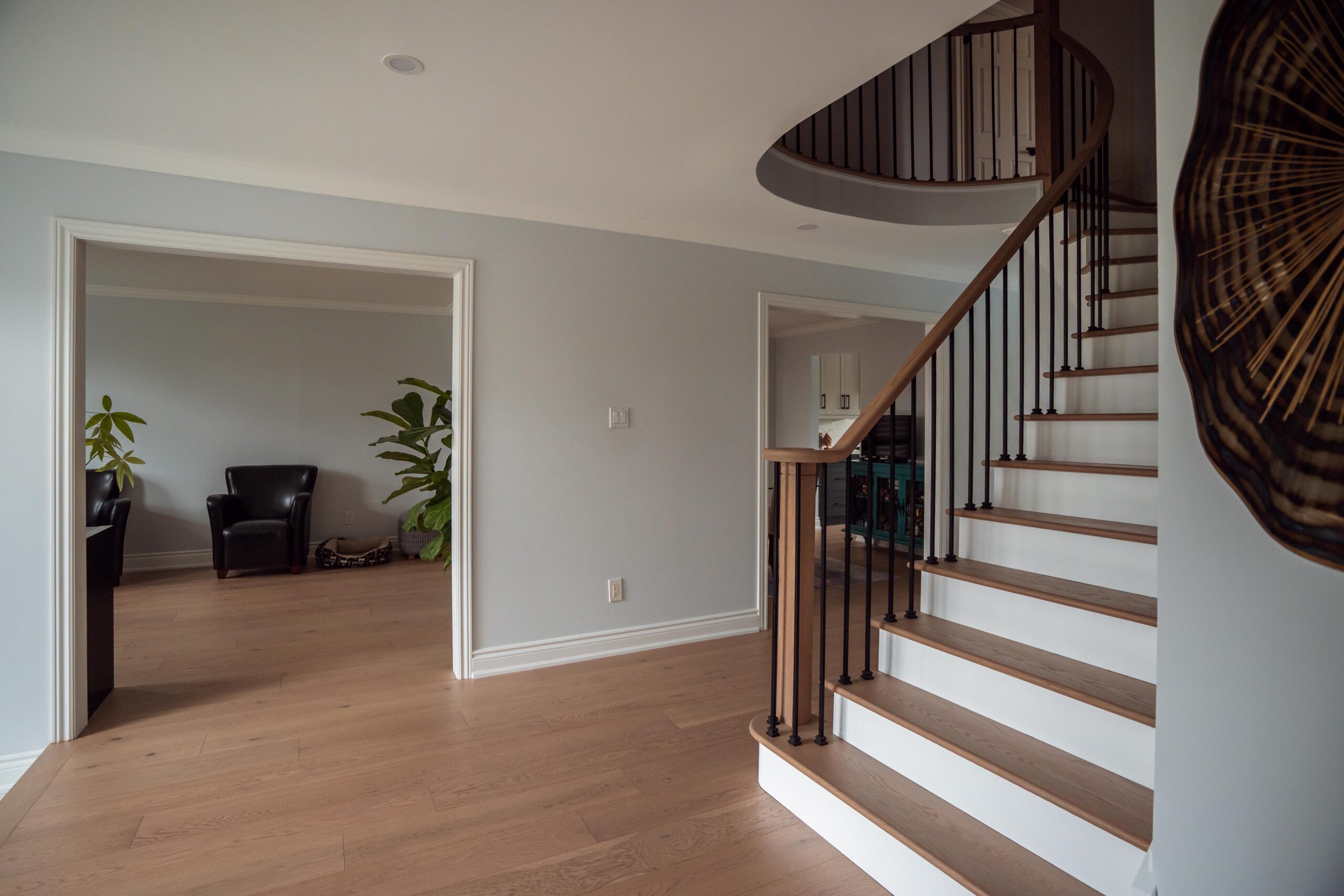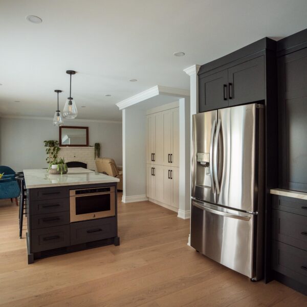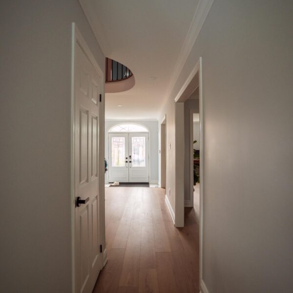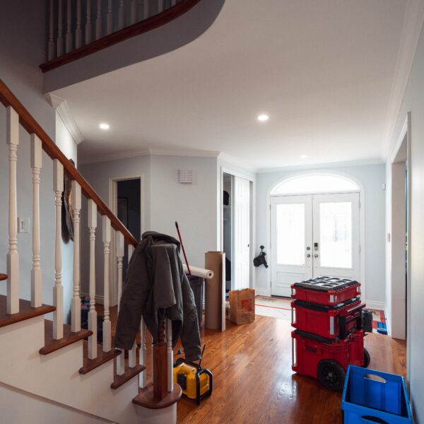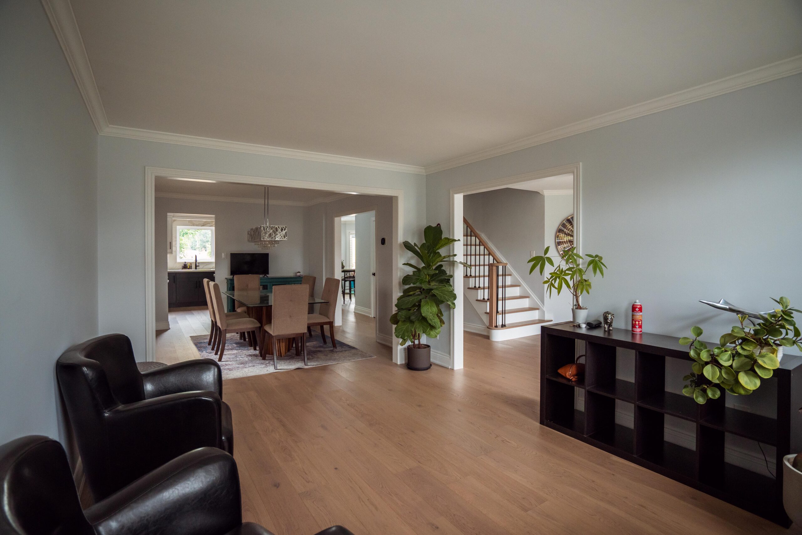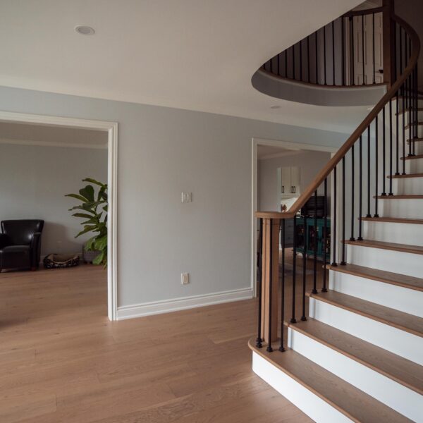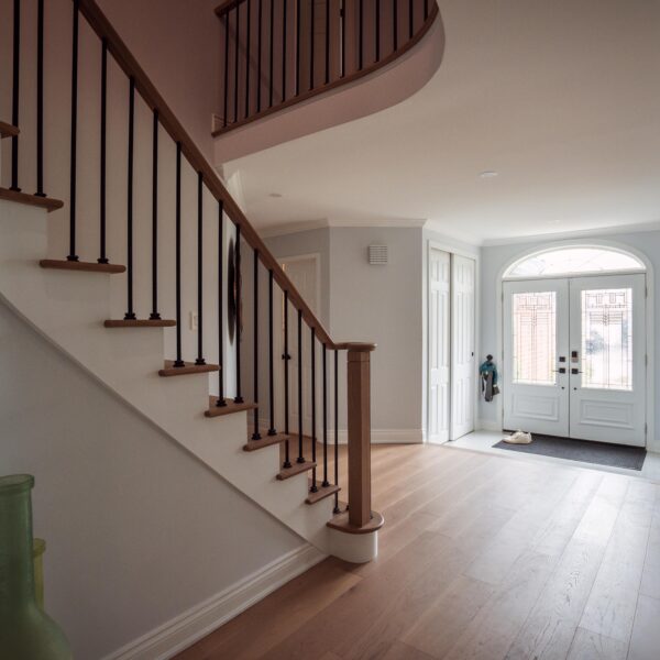 Finally, we refinished their stairs to give a grand feel to their entrance way and to make them exist perfectly with the rest of the updates we made to the main floor as a whole. The clients are just as happy as we are on this one, and we’re so glad we could keep this main floor remodel on time and on budget for these clients.