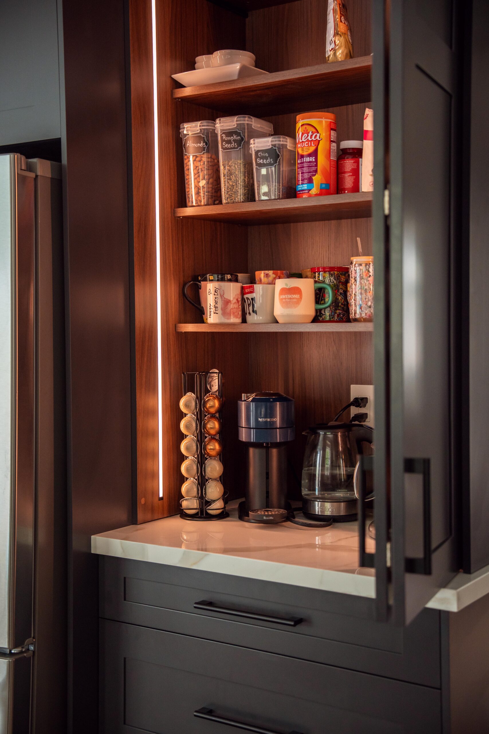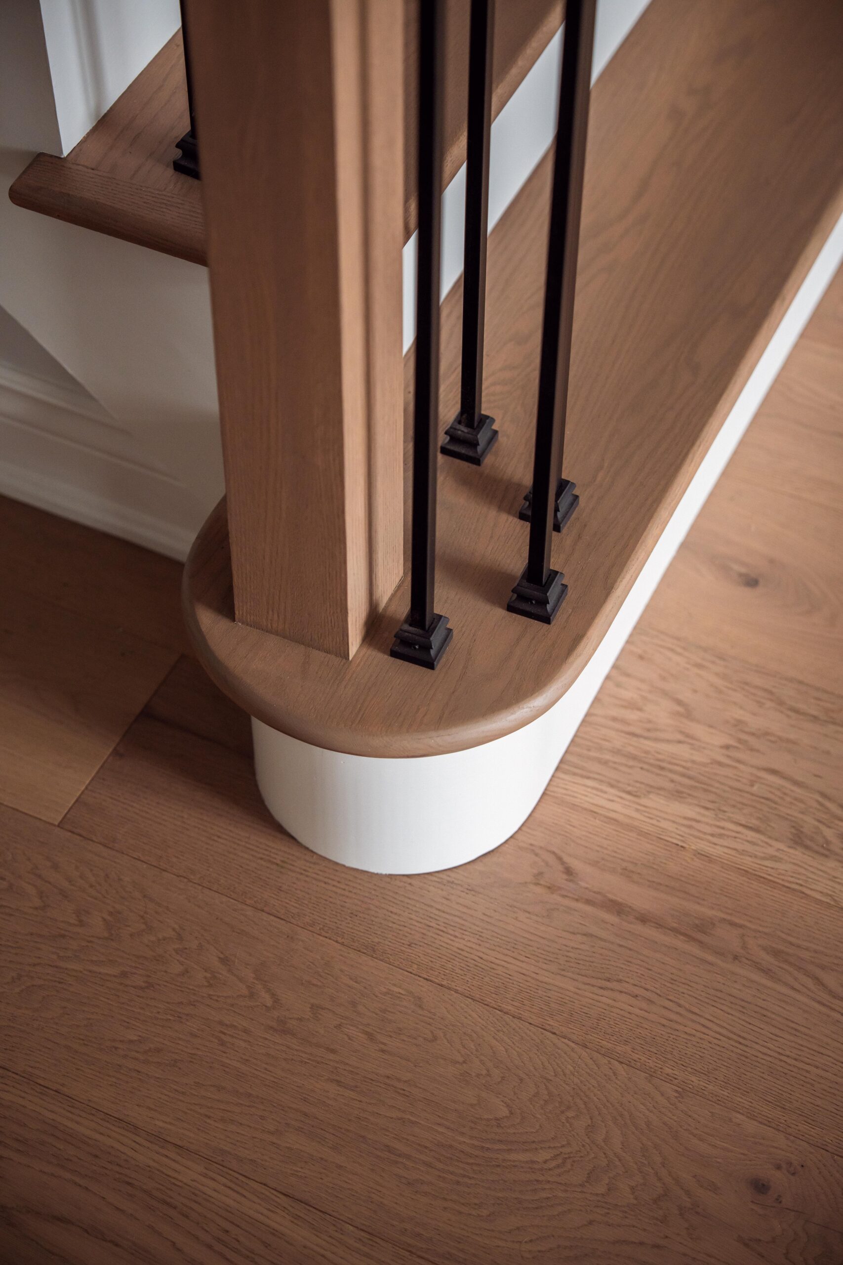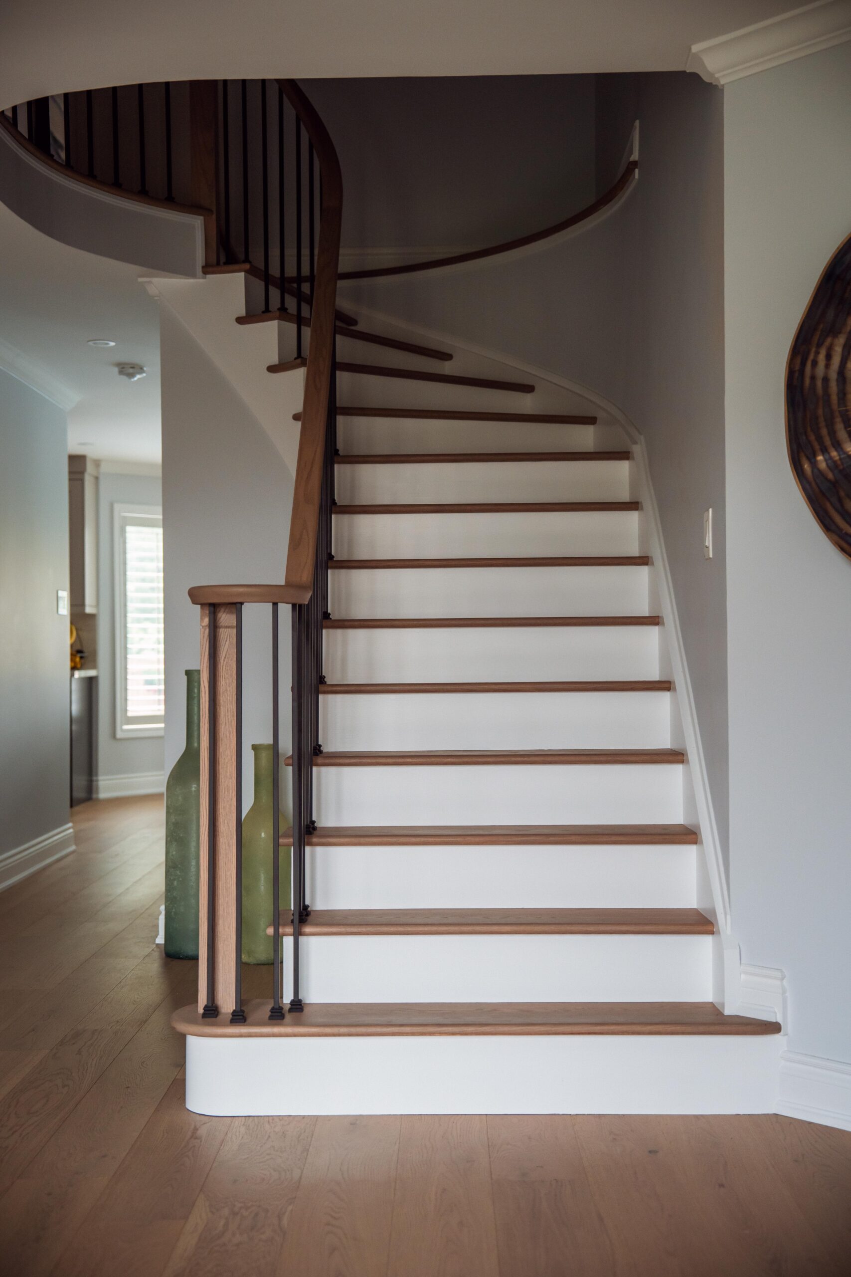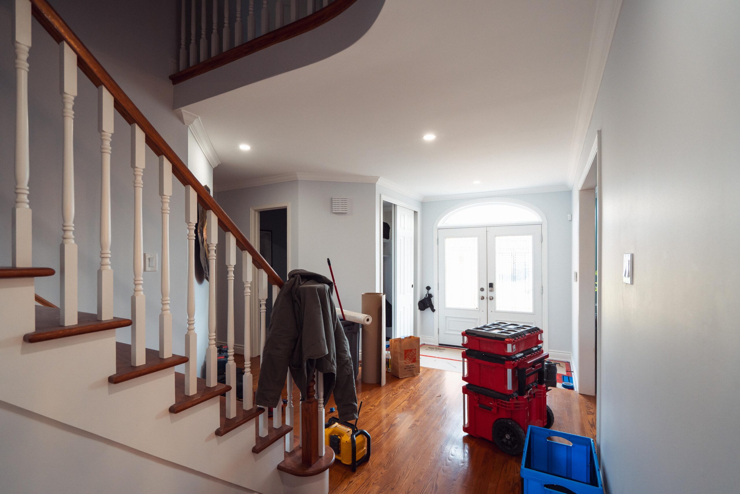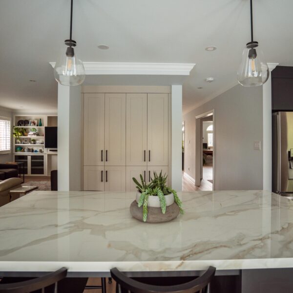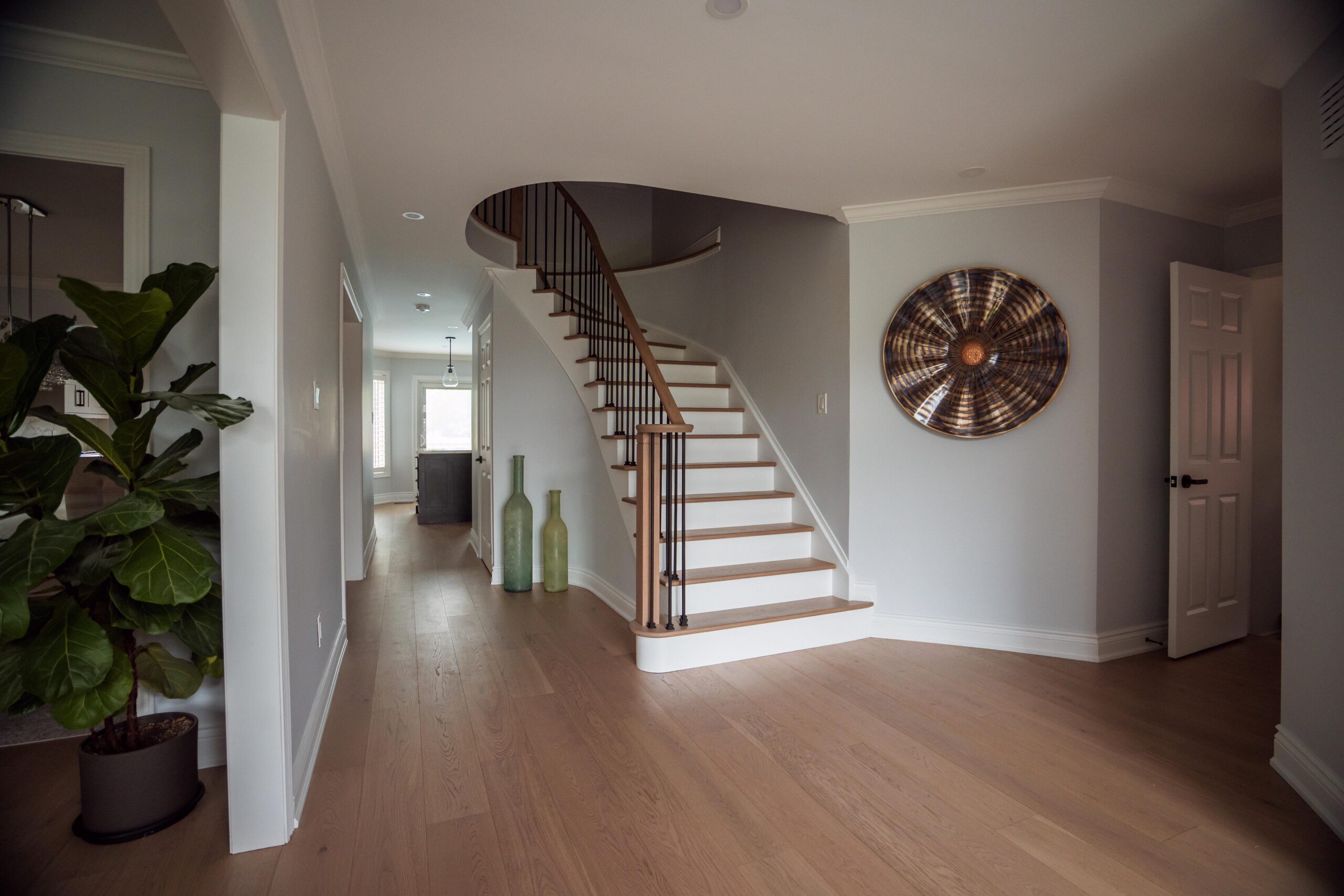 Finally, we refinished their stairs to give a grand feel to their entrance way and to make them exist perfectly with the rest of the updates we made to the main floor as a whole. The clients are just as happy as we are on this one, and we’re so glad we could keep this main floor remodel on time and on budget for these clients.