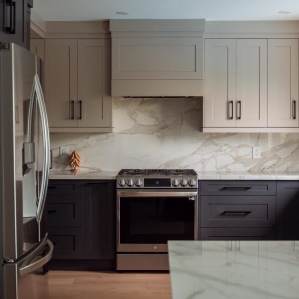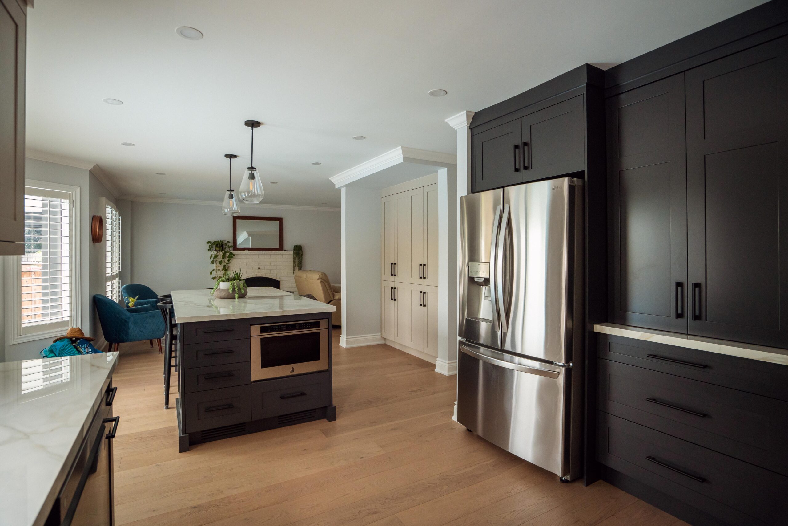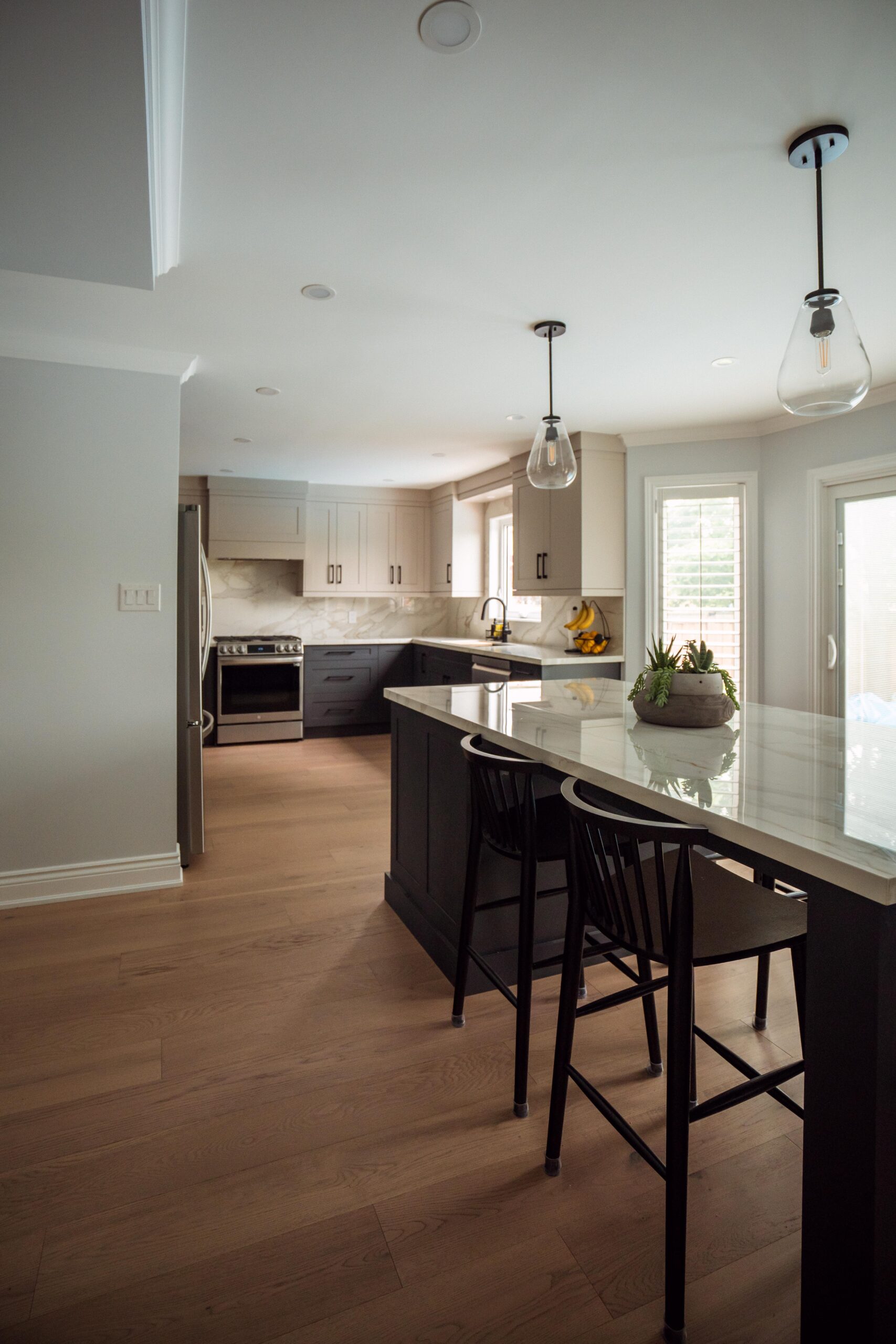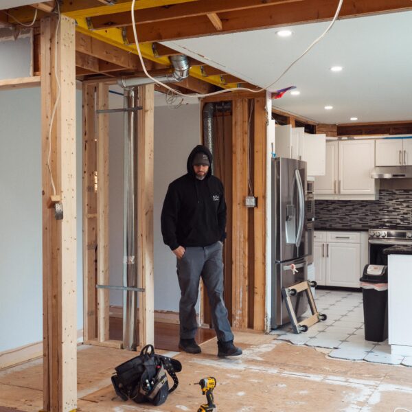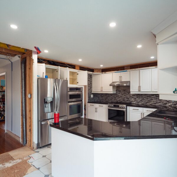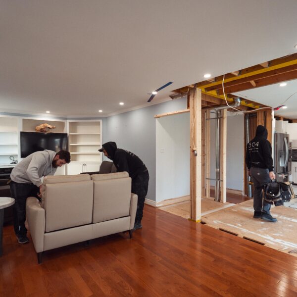 Welcome back to Winding Way! These Burlington homeowners already had us complete 3 bathrooms as well as the foyer of their home, and they were ready for a second phase of the project – tackling the main floor. We were able to remove a load bearing wall between the kitchen and living room, opening up the space and creating the perfect flow to install our new hardwood floors throughout.