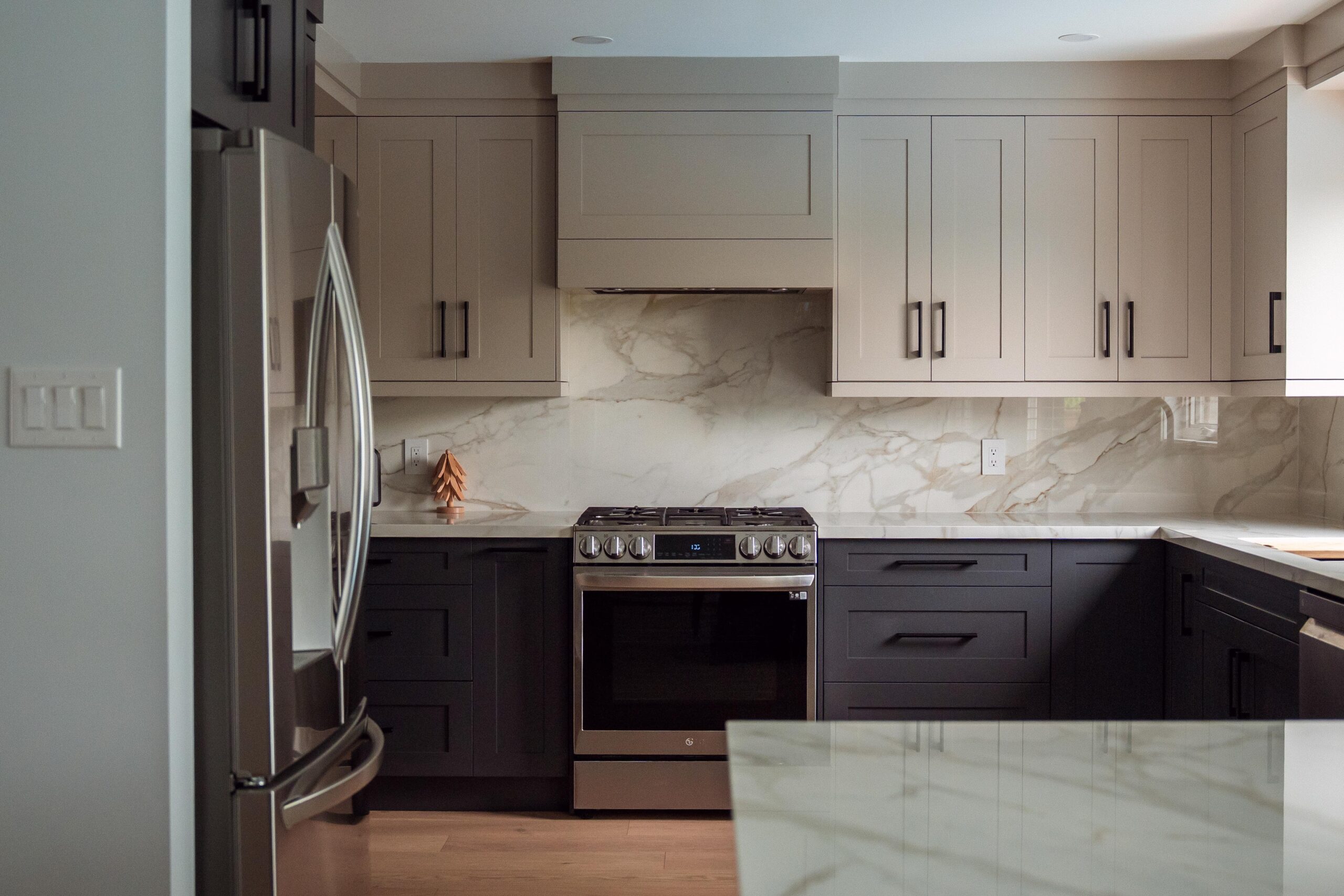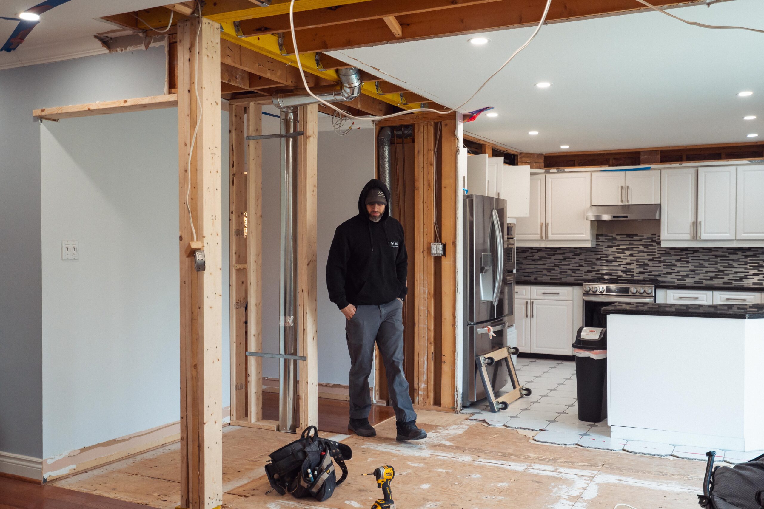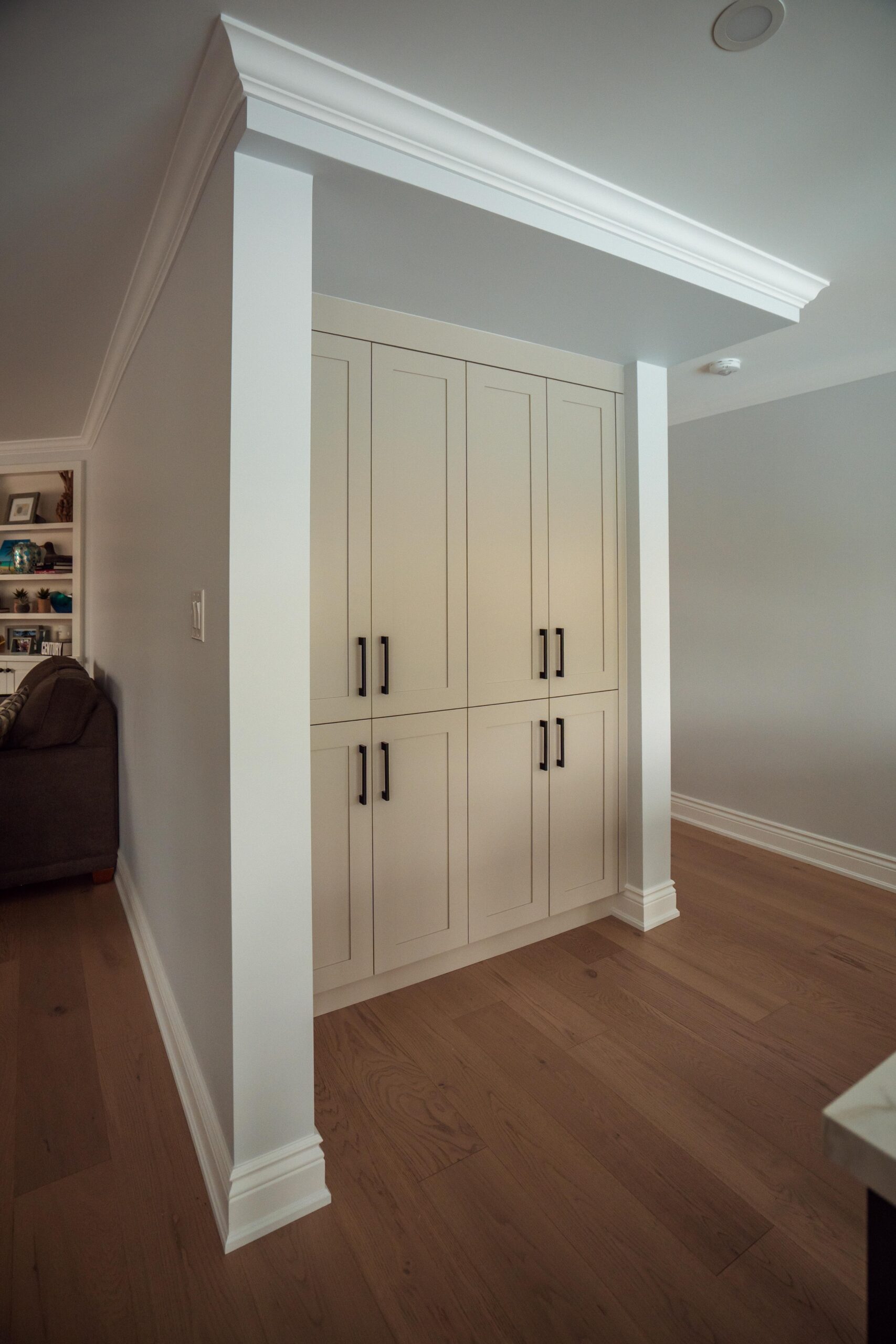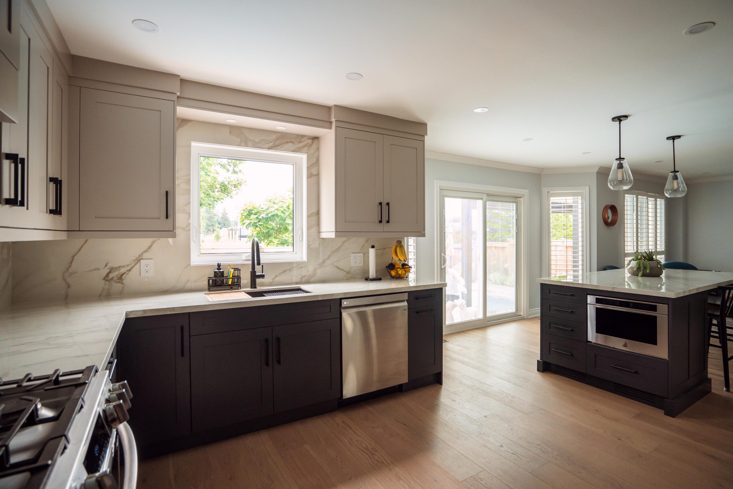 Welcome back to Winding Way! These Burlington homeowners already had us complete 3 bathrooms as well as the foyer of their home, and they were ready for a second phase of the project – tackling the main floor. We were able to remove a load bearing wall between the kitchen and living room, opening up the space and creating the perfect flow to install our new hardwood floors throughout.